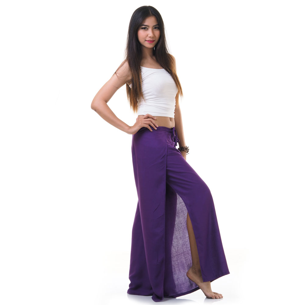Thai Wickelhose, Hosenrock & Fischerhose in zwei Violett-Farbtönen • ausgefallene Wickeltechnik • Einheitsgröße = Free Size S - M (36 - 42) • 100% Viskose (Rayon) = weiche vegane Kunstseide aus natürlichen Rohstoffen • Maschinenwäsche